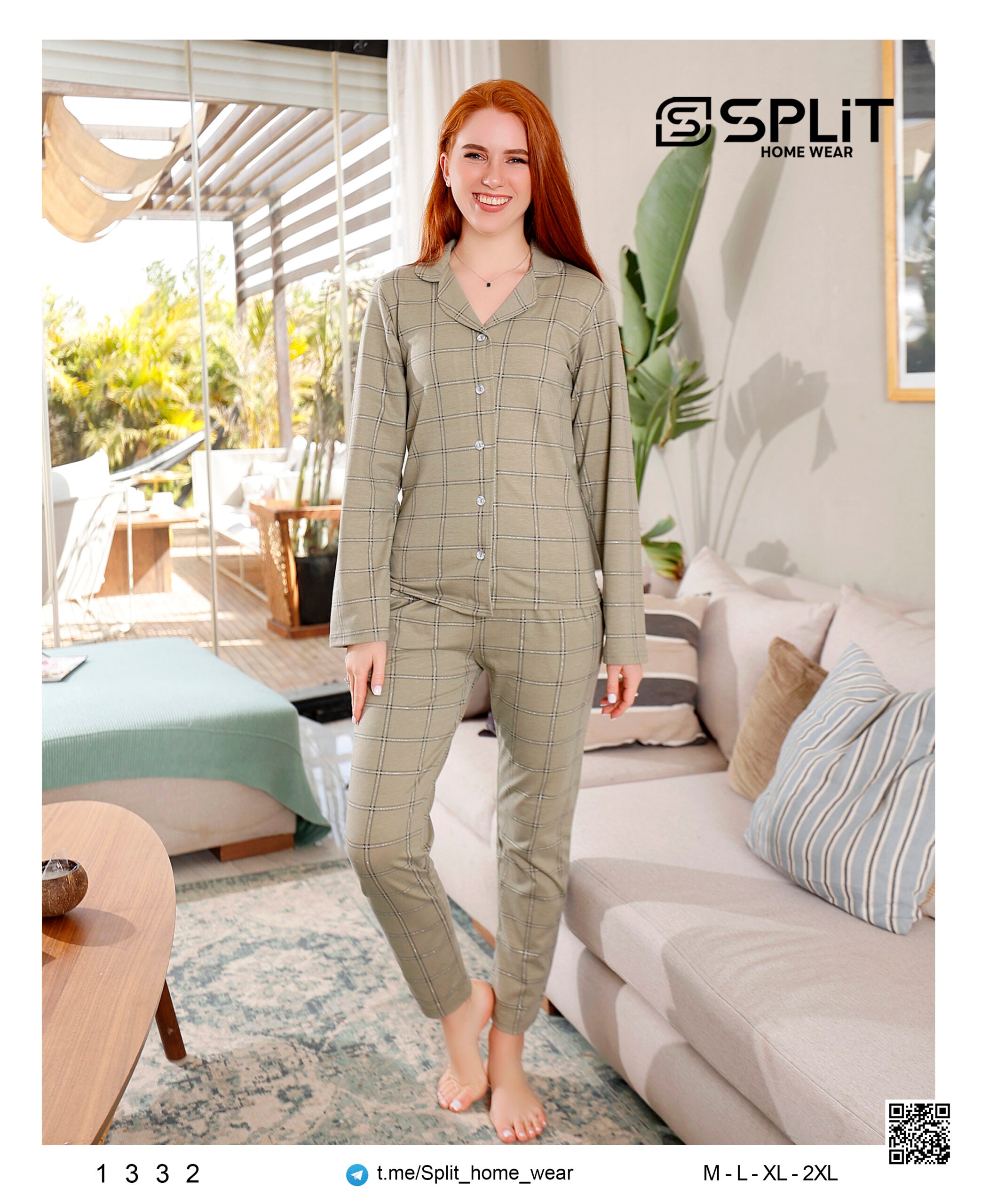 💚 راحة وأناقة مع بيجاما Split – كود 1332