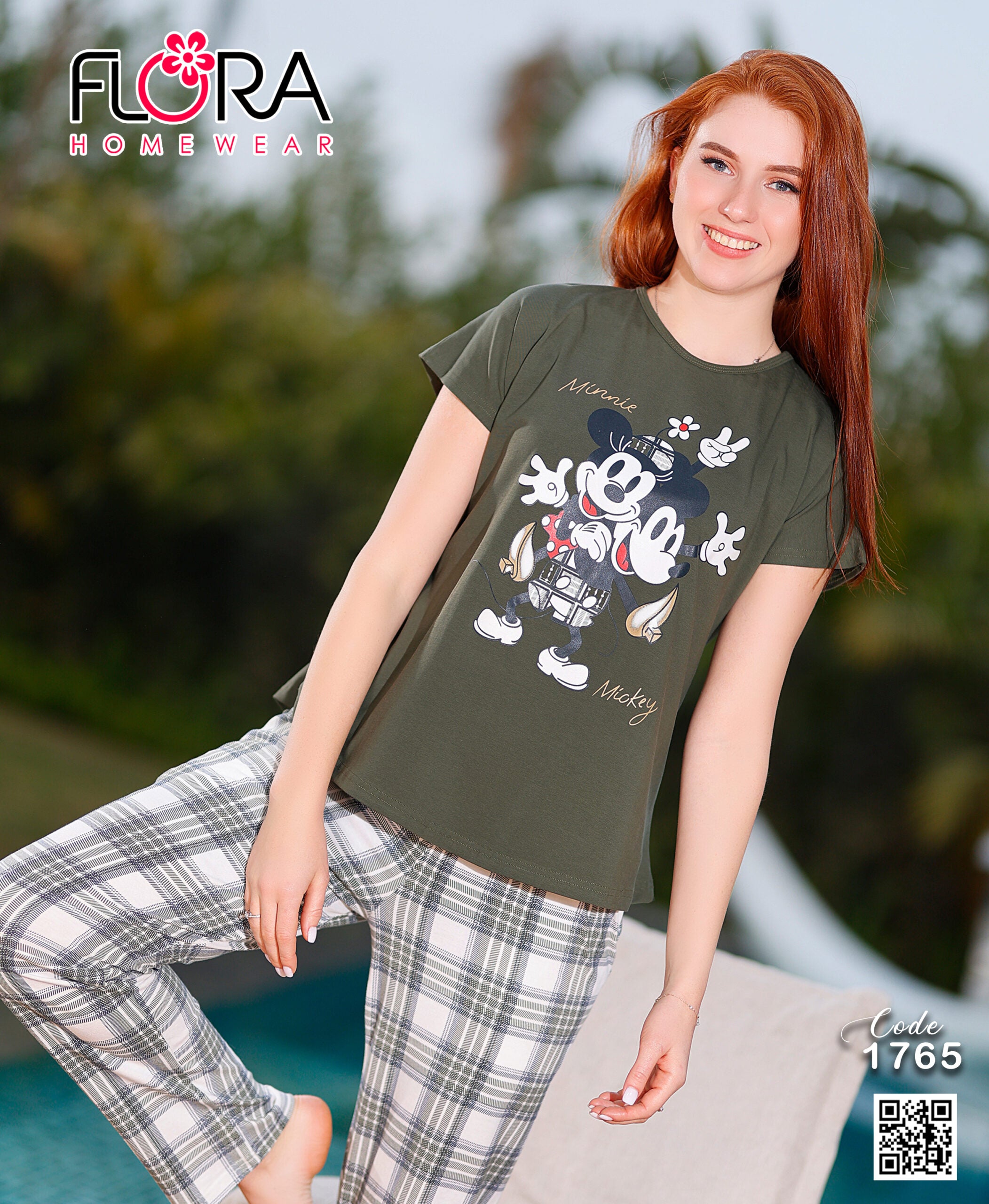 ✨ بلوزة بطبعة ميكي ماوس المرحة + بنطلون بستايل مربعات كاجوال = لوك منزلي مثالي للبنات اللي يعشقن الأناقة والراحة معاً.