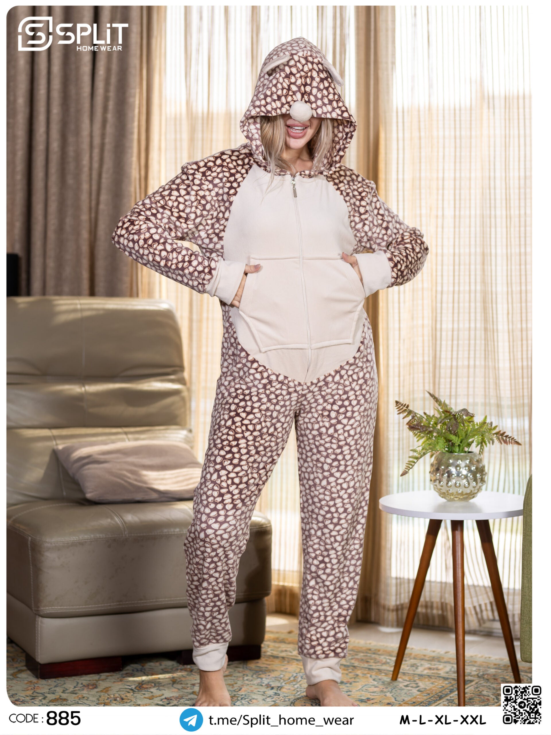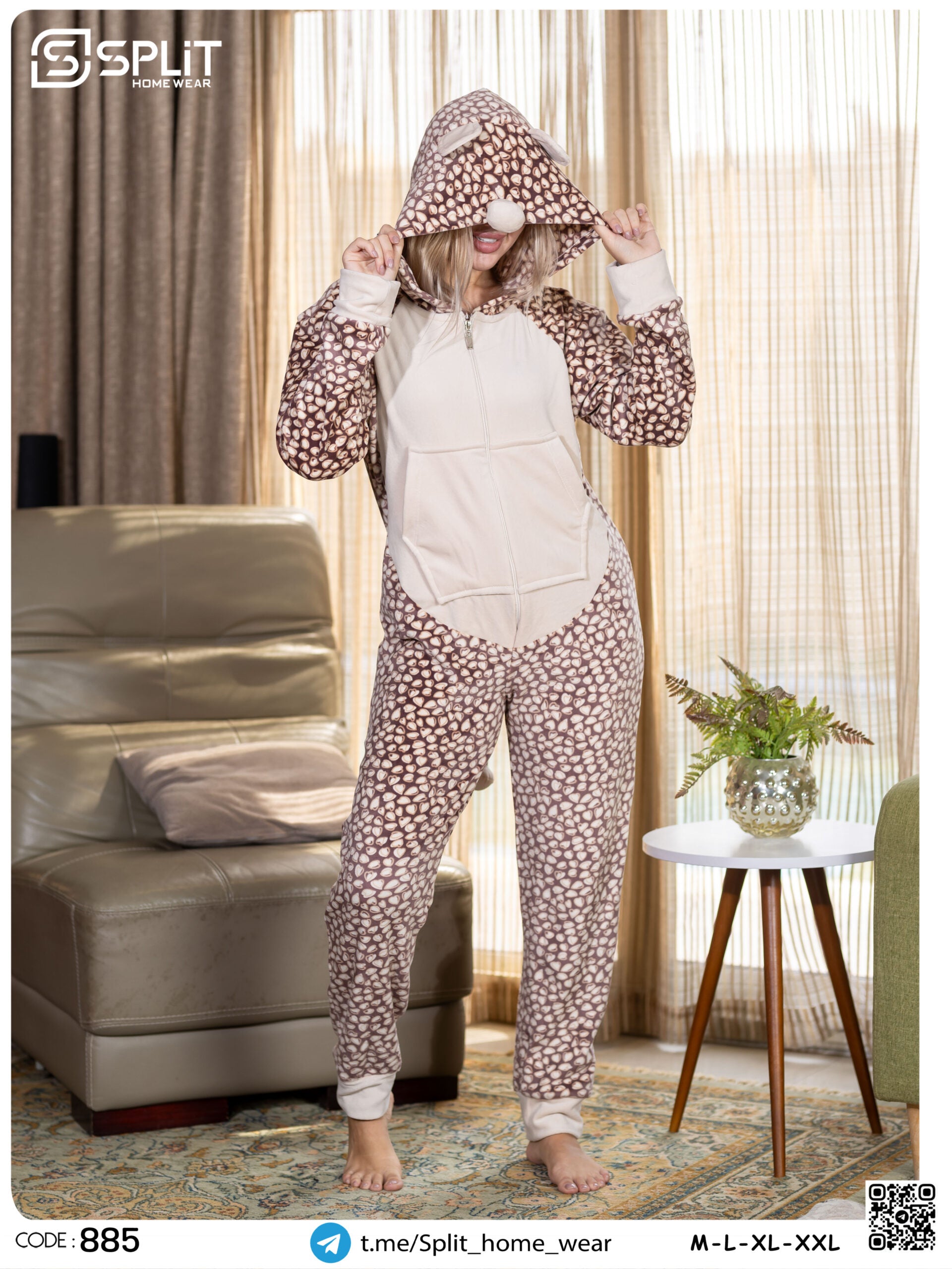 الطقم الظاهر بالصورة (كود: 885) مثالي للدفي والراحة مع لمسة كيوت جداً 🤎🐻! تصميمه يشبه جلد الحيوان بطابع ناعم وفرو دافئ، وغطاء الرأس مع كورة بومبوم يعطيه لمسة مرحة! 😍